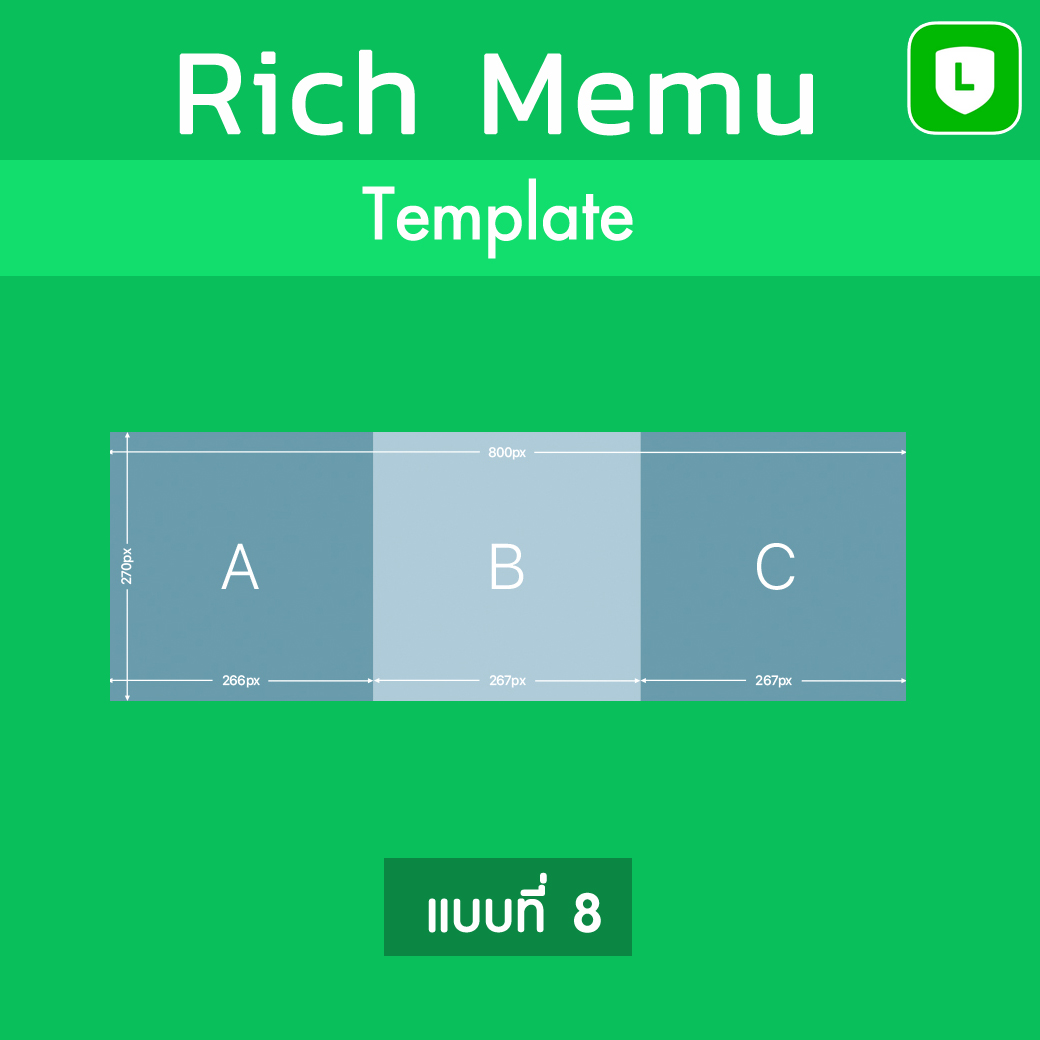ทางทีมงานออกแบบของเรา มีรูปแบบริชเมนู Rich Menu ให้คุณได้เลือกใช้อย่างหลากหลายค่ะ ทั้งริชเมนู(Rich Menu)ขนาดใหญ่ และขนาดเล็กค่ะ ดังนี้ค่ะ